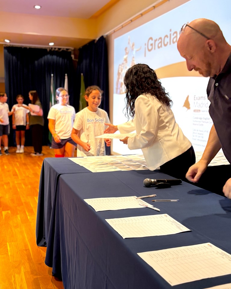 Students from CM2 to Terminale attended this special event, which also featured a speech by Michael Terry, representative of Exams Catalunya, who highlighted the value of perseverance in language learning and the importance of earning a qualification from the University of Cambridge International Assessment.