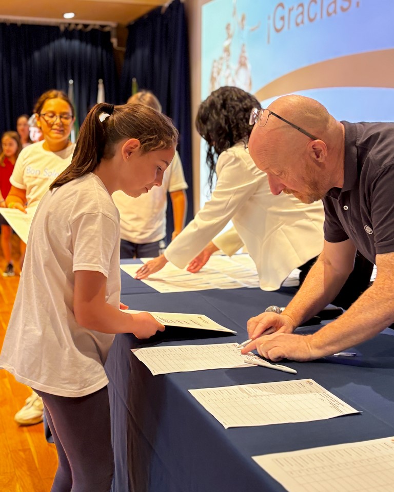 Alumnos desde CM2 hasta el último curso de bachillerato asistieron a este acto especial, que contó con la intervención de Michael Terry, representante de Exams Catalunya, quien destacó la importancia de la perseverancia en el aprendizaje de idiomas y el valor de obtener una titulación de la University of Cambridge International Assessment.