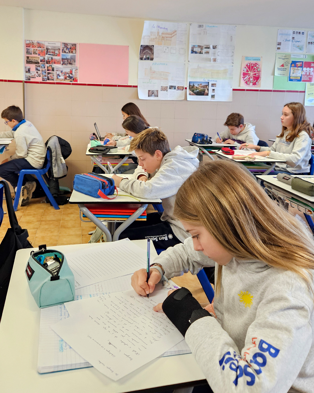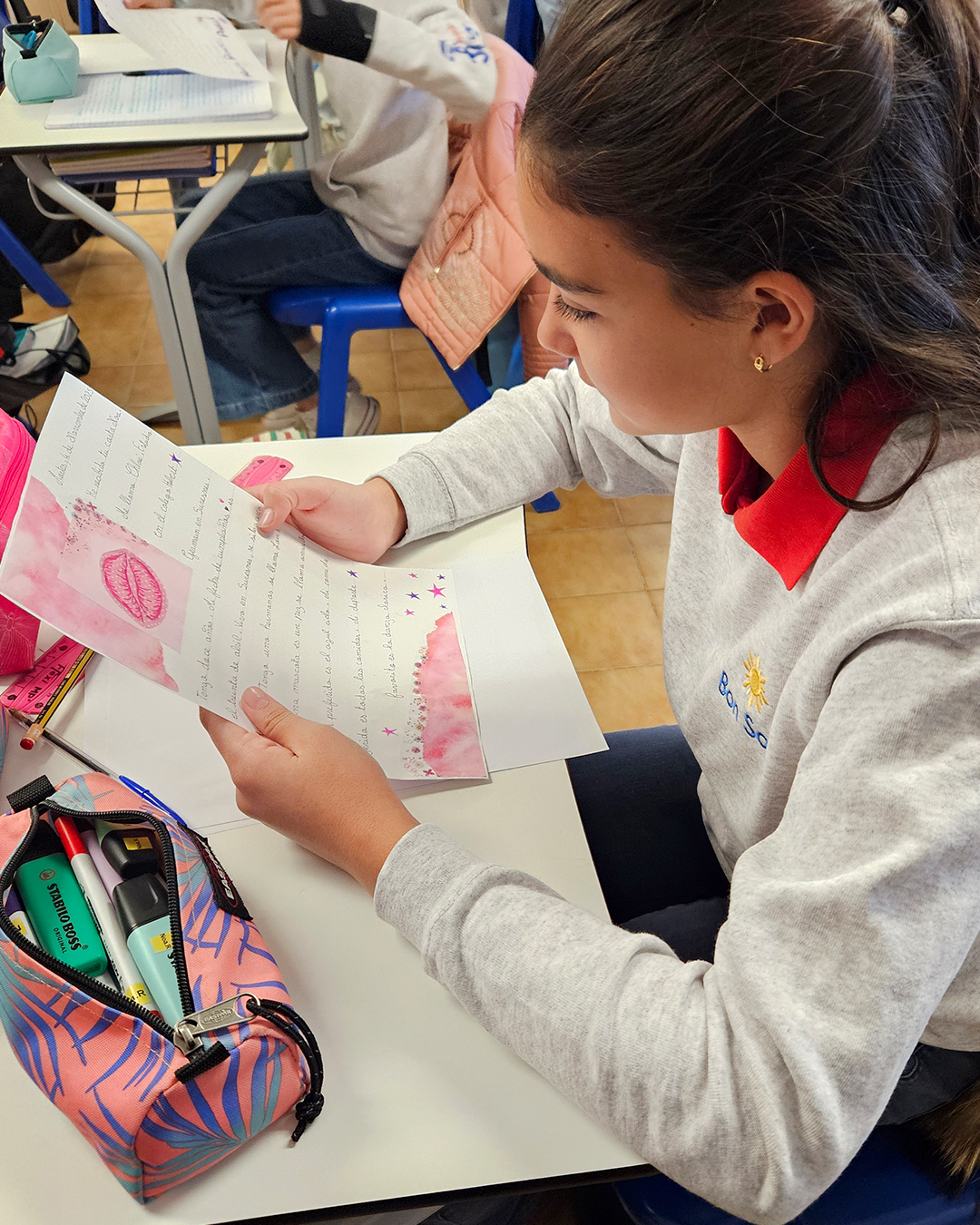 Los alumnos redactaron una primera carta de presentación en la que contaron sus vacaciones y hablaron sobre el inicio del curso escolar. Después, recibieron con entusiasmo la respuesta de sus compañeros de correspondencia, antes de preparar una segunda carta acompañada de felicitaciones de Navidad y Año Nuevo.