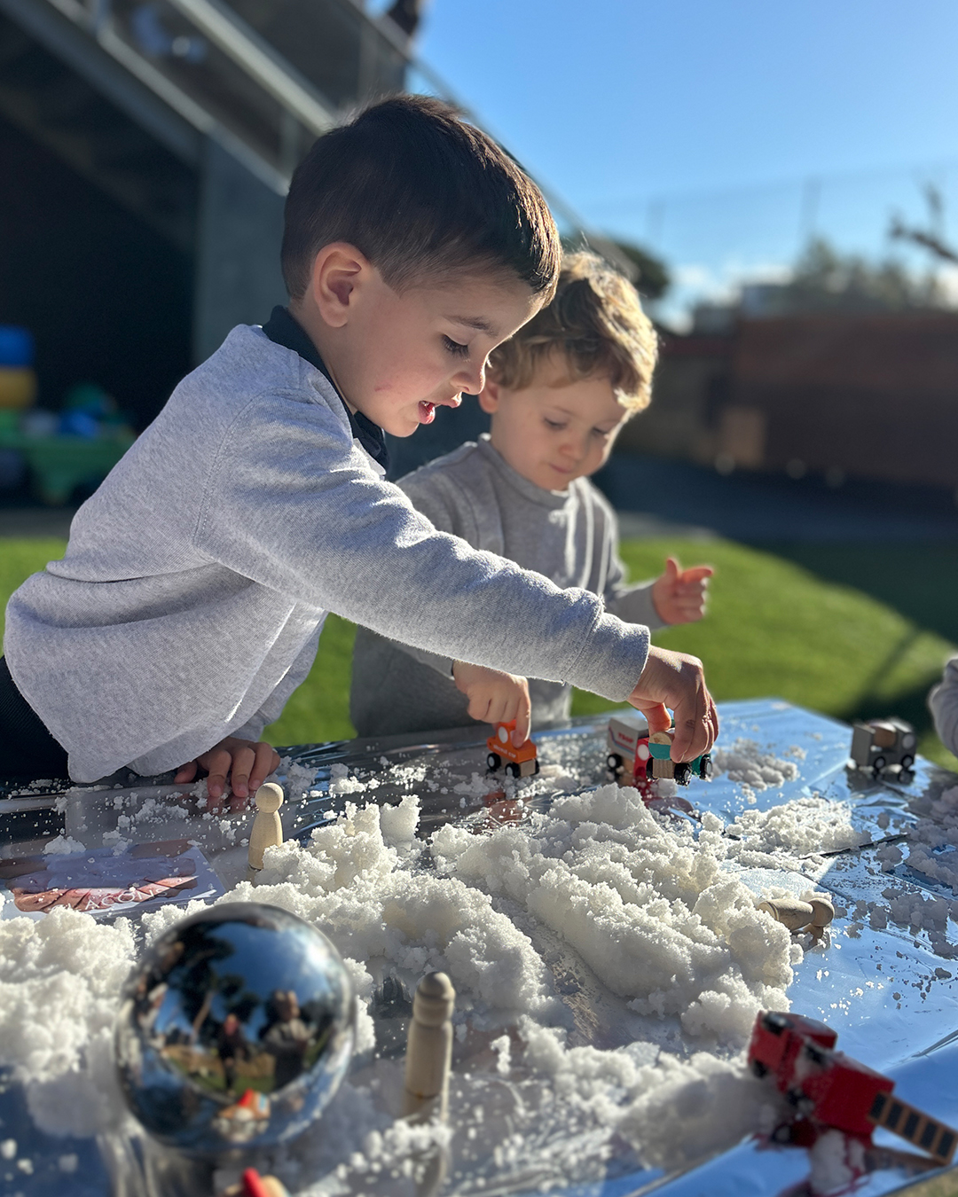 Cette semaine, nos tout-petits ont exploré la neige lors d’une activité sensorielle en extérieur ☀️
