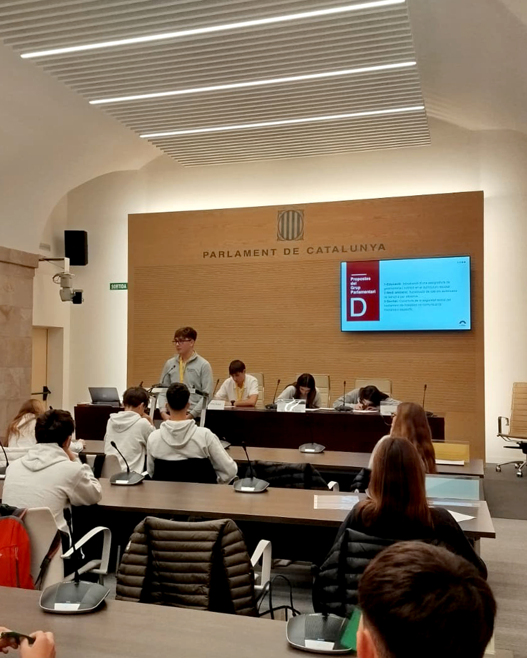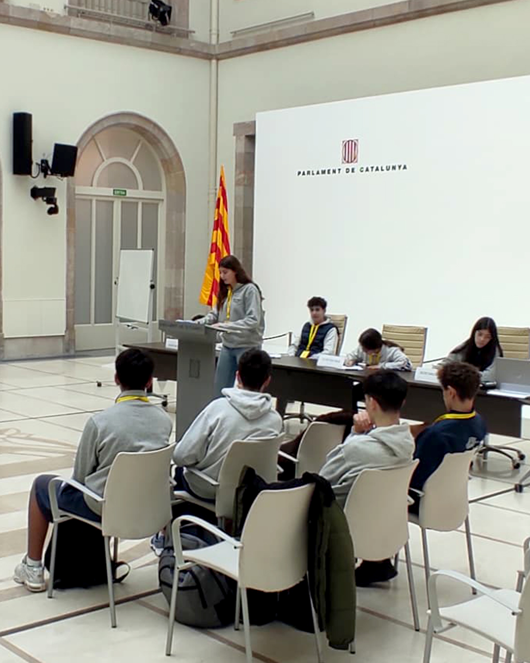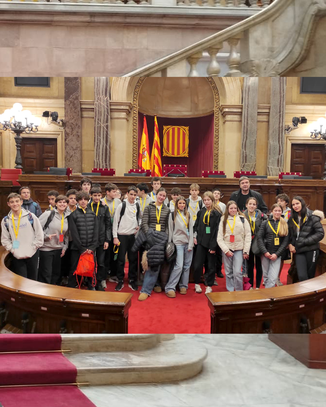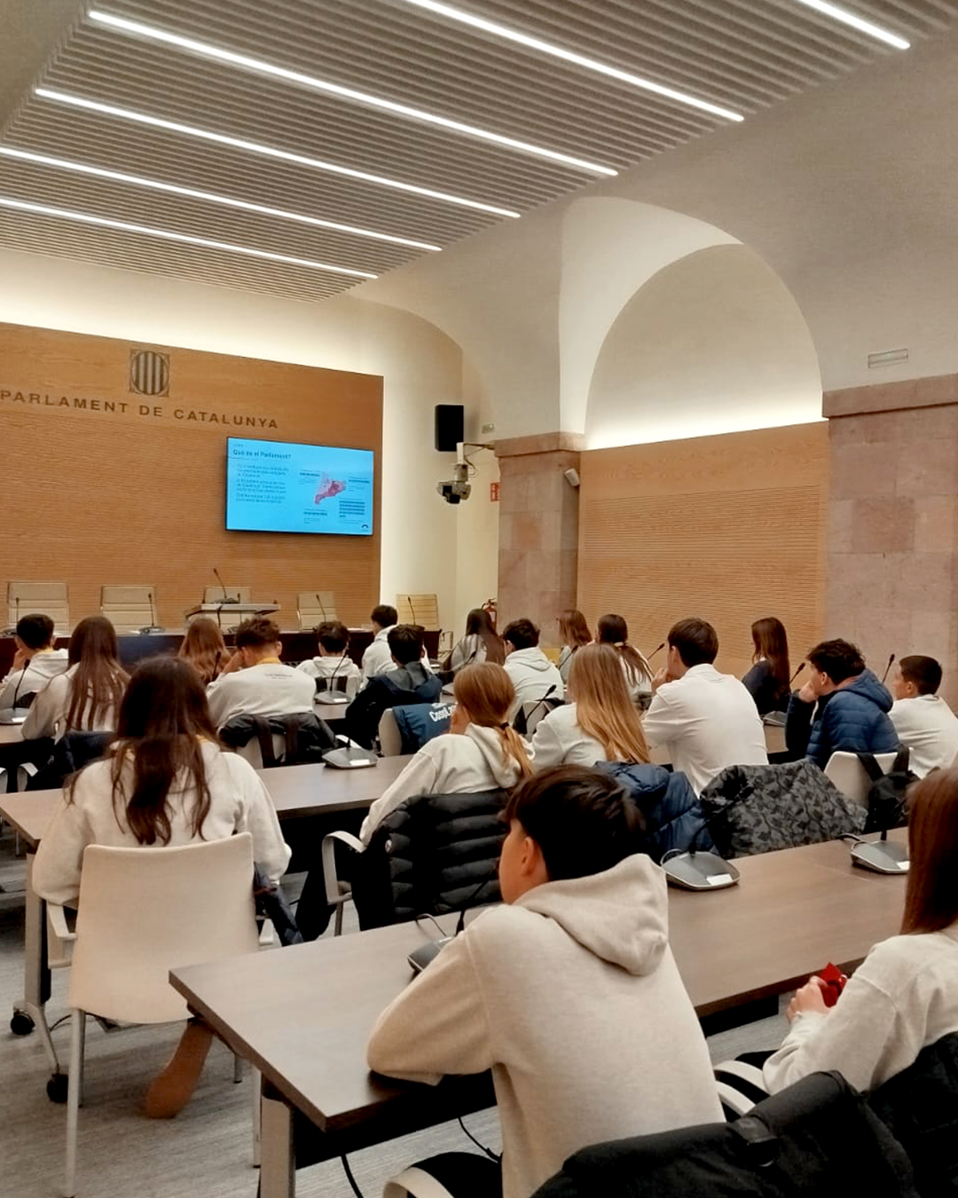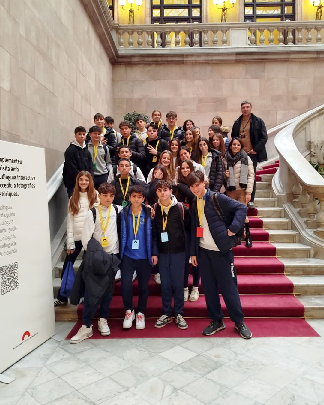Cette sortie a été préparée en cours de langue catalane et complétée par une visite de l’hémicycle. Elle a constitué une excellente opportunité de découvrir le siège du Parlement de Catalogne ainsi que le travail mené par ses députés et députées.