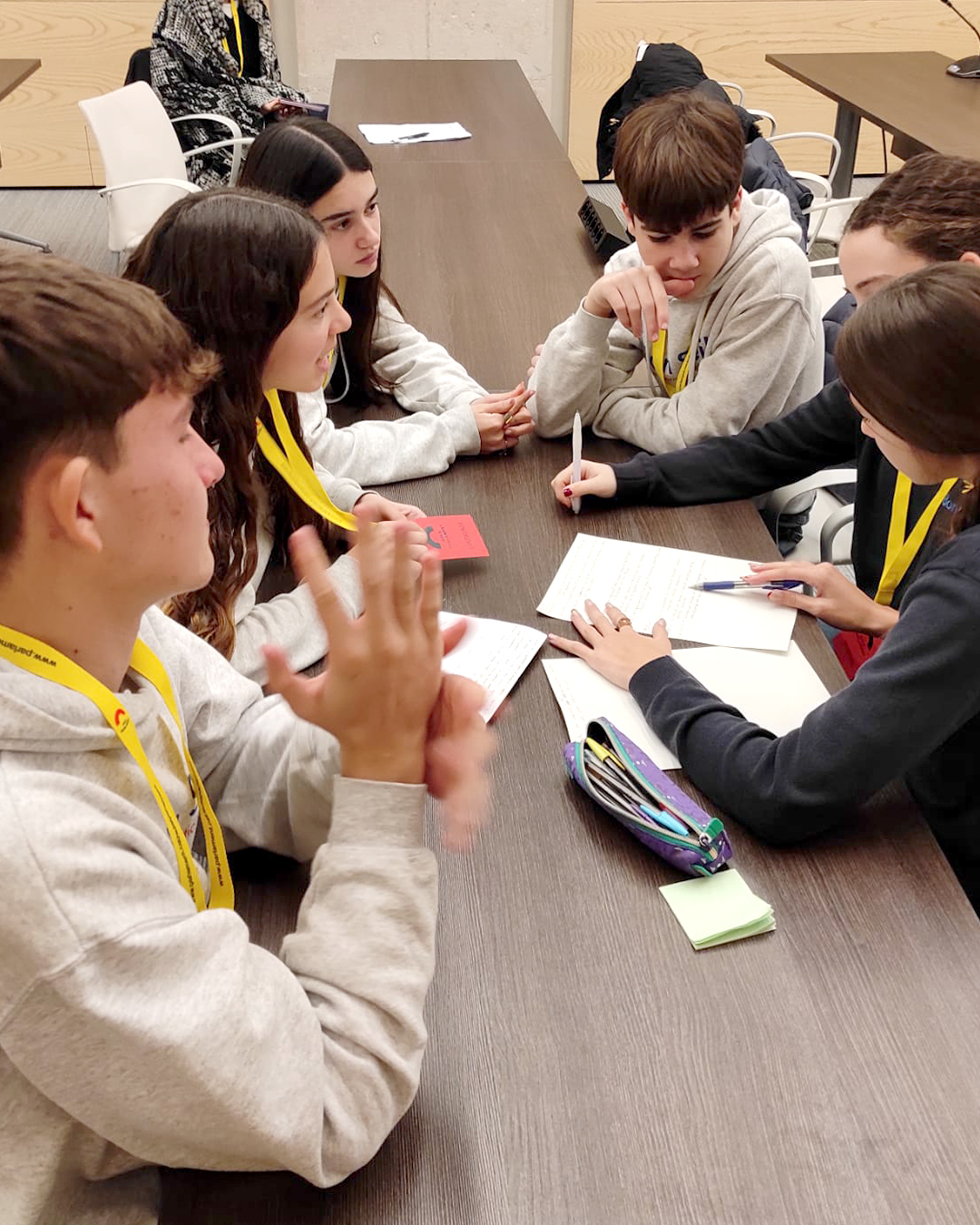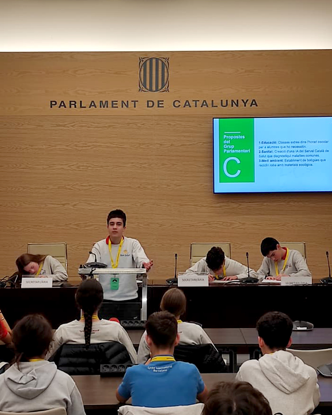 À travers un jeu de rôle, nos élèves de 3ème ont incarné des députés et députées d’une commission parlementaire et se sont constitués en groupes parlementaires afin d’élaborer et de débattre leurs propres projets de loi, inscrits dans les domaines de l’éducation, de la santé, de l’égalité et de l’environnement, et conformément aux compétences établies par le Statut d’autonomie de la Catalogne.