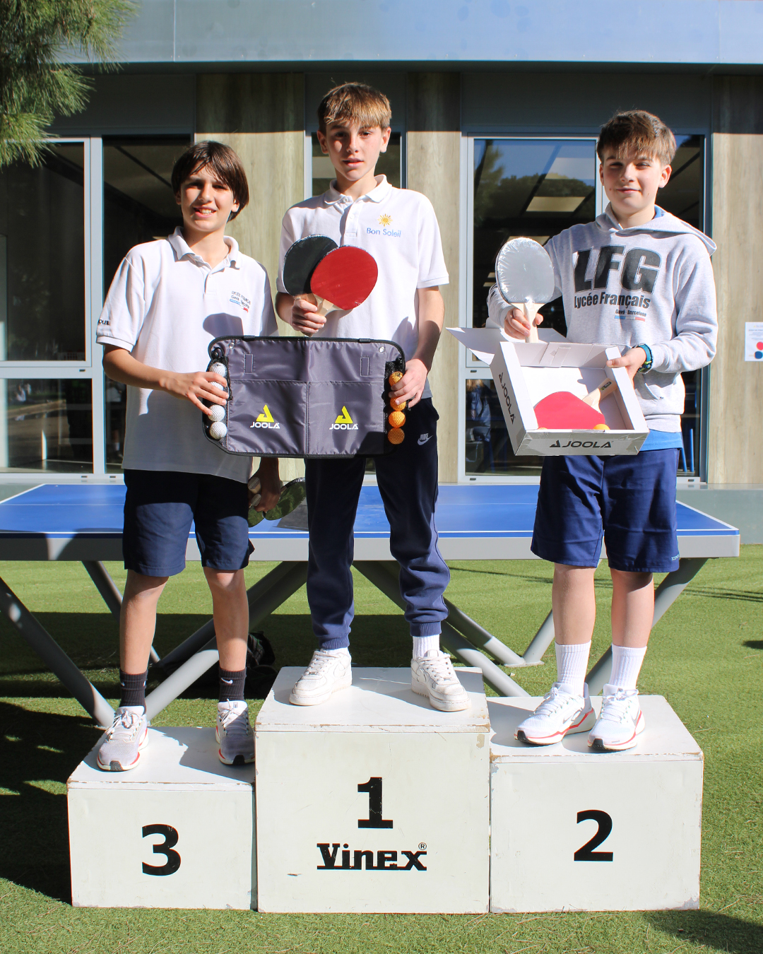 En la categoría de dobles, los ganadores fueron Lucas A. y Alex M. En la modalidad individual, el tercer puesto fue para Leo M., el segundo puesto para Kai J. y el primer puesto para Jan G.