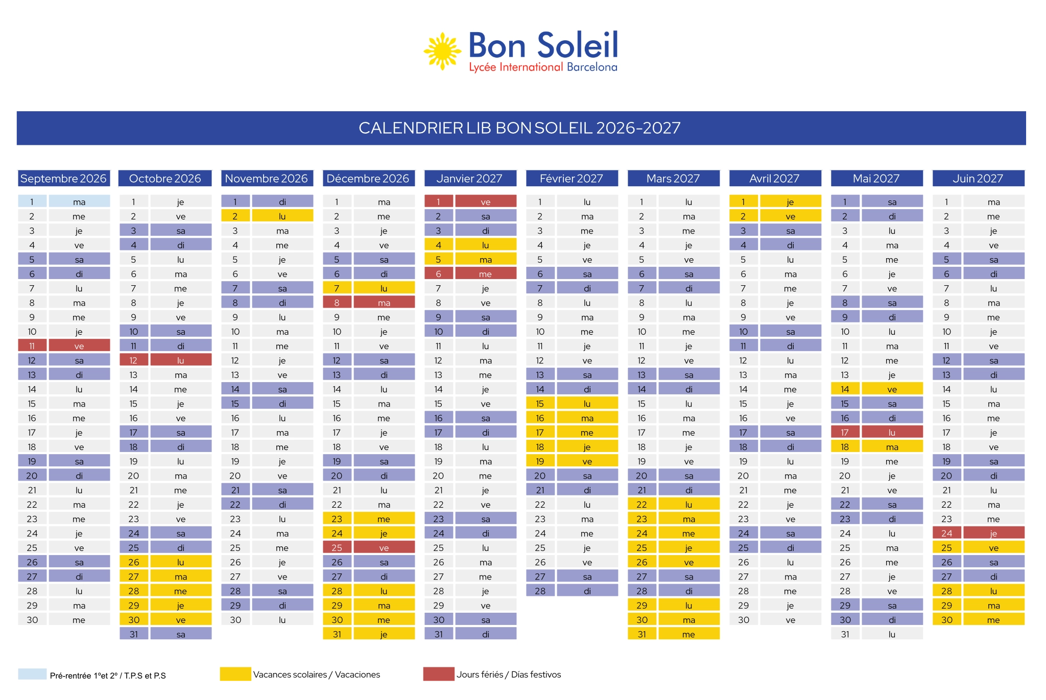 Calendrier scolaire 2026-2027